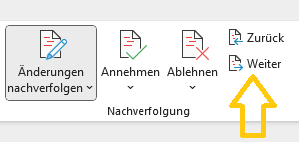 Mithilfe der blauen Pfeile können Sie von einer Änderung zur nächsten springen